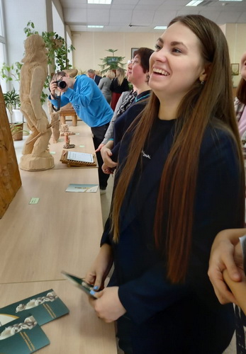 Мастер провел авторскую экскурсию по экспонатам, рассказав об истории создания скульптур и панно, вырезанных из разных пород дерева: липа, тополь, кедр, бук. После экскурсии Дмитрий Викторович отвечал на вопросы гостей выставки. А вопросов было немало!