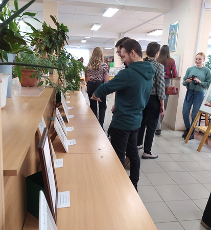 Сегодня в читальном зале 1 в УЛК-2 прошло открытие выставки художественных работ студентов, выпускников и преподавателей кафедры ландшафтного строительства УГЛТУ, на которой присутствовали ректор УГЛТУ Платонов Е. П., директор ИЛП Нагимов З. Я., преподаватели кафедры ландшафтного строительства: Сродных Т.Б., Фролова Т.И., Луганская С. Н., Вишнякова С. В., Агафонова Г. В., Кайзер Н.В., а также аспиранты и выпускники кафедры.