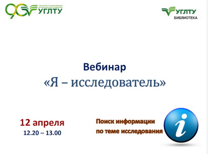 12 апреля в рамках «Дней студенческой науки» научная библиотека провела вебинар для студентов «Я – исследователь».