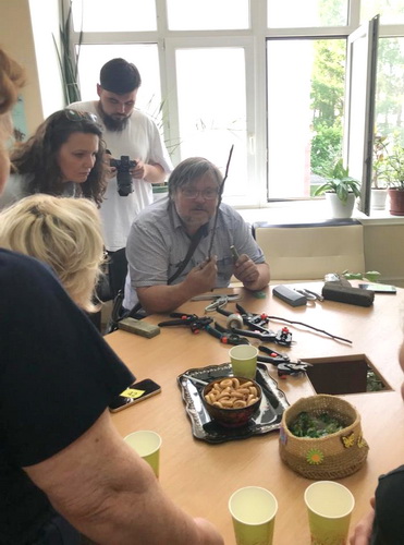 Рабочее пространство обоих мастеров в течение 1,5 часов не пустовало ни минуты: привика вразрез, в защеп, за кору - успевай запоминать, как ловко работают руки садовника; а какие красочные обережные куклы получились у участников мастер-класса Оксаны Михайловны.