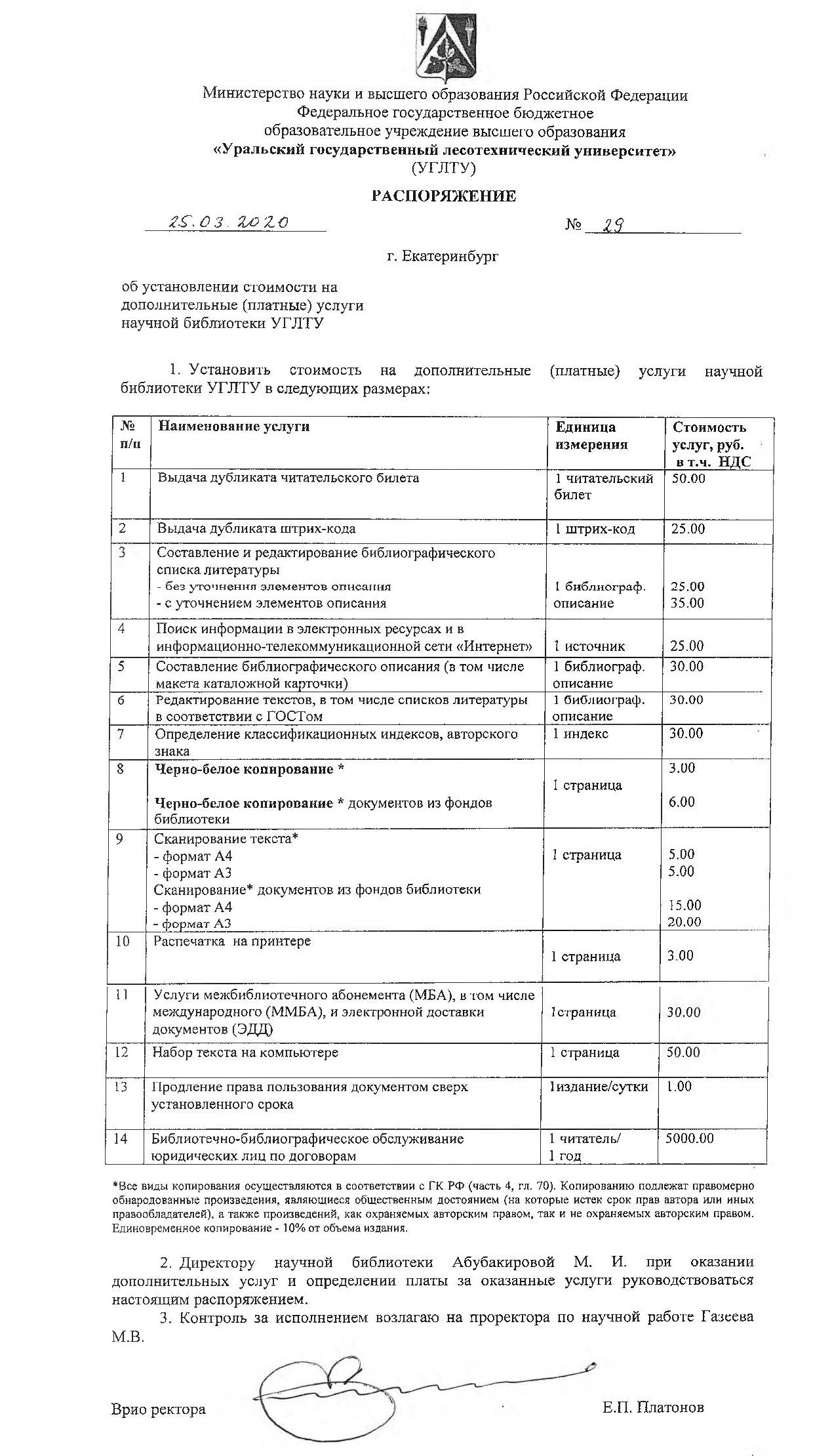 прейскурант